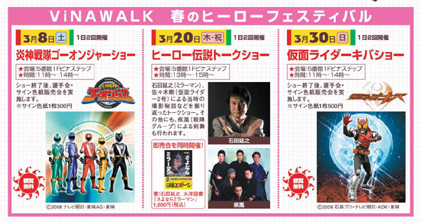 というわけで、来る3月20日(祝・木曜)に小田急線の海老名駅前ビナウォークにて「ヒーロー伝説トークショー」を開催いたします。しかも、もう一人のヒーローということであの一文字隼人こと佐々木剛氏も特別参加!